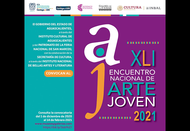 Con la finalidad de estimular la creación artística en México, el Instituto Cultural de Aguascalientes (ICA), en conjunto con el Patronato de la Feria Nacional de San Marcos, y con la colaboración de la Secretaría de Cultura y del Instituto Nacional de Bellas Artes y Literatura (INBAL), convocan a todos los productores de artes visuales nacionales o extranjeros residentes en el país a participar en el XL Encuentro Nacional de Arte Joven 2021.