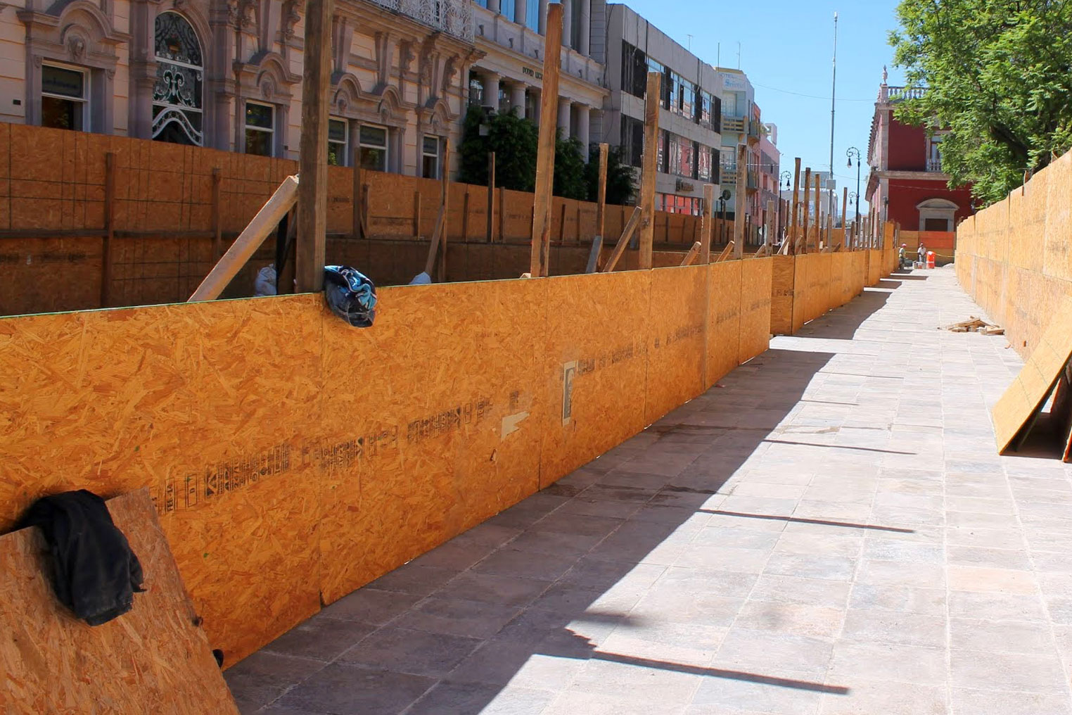 El cambio de piso en las secciones antes mencionadas se estima concluir con los trabajos antes del primero de Agosto para que sean retirados los tapiales siendo así abiertas dos secciones de los trabajos de remozamiento de la Plaza de la Patria.