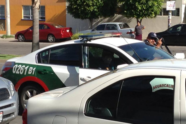 Hola Palestra Aguascalientes: Aquí les dejo una foto de unos tránsitos que nomás andan viendo a quien muerden en la colonia Haciendas de Aguascalientes, se la pasan acosando gente y cuando les tome una foto vean que hasta posaron con una seña finísima. Ojalá y la publiquen.