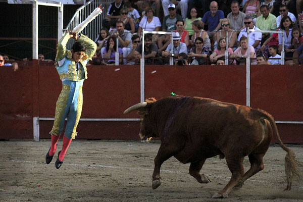 El novillero aguascalentense vio la cara y la cruz en Collado Mediano ante el único ejemplar que pudo lidiar puesto que ha cortado una oreja pero también sufrió una cornada en el muslo de la pierna derecha donde al parecer lleva dos trayectorias.