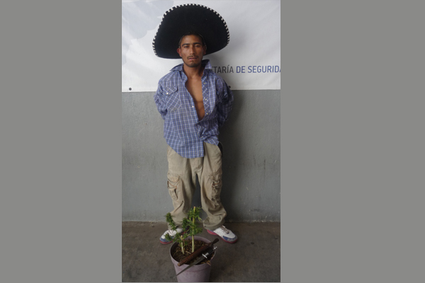 Ya se disponían a salir los oficiales de la vivienda junto con esta persona, cuando uno de los policías observó, en un pasillo y justo a un lado de la puerta de un baño, una maceta de plástico con una planta, al parecer de mariguana, con una altura de aproximadamente 30 centímetros, misma que también fue asegurada y puesta a disposición de las autoridades correspondientes.