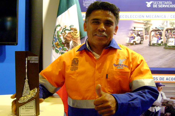 En su oportunidad, José Martín García Córdova, empleado de la Dirección de Limpia y Aseo Público, al recibir la Escoba de Platino, de manos del Director Ejecutivo de ATEGRUS, Rafael Apraiz Egaña, externó su beneplácito ante la proyección que gracias a su esfuerzo y al de los 600 trabajadores que integran esta área, ha alcanzado Aguascalientes en México y a nivel internacional, al tiempo de agradecer la oportunidad de conocer nuevas tecnologías para eficientar este servicio en el municipio de la Capital.