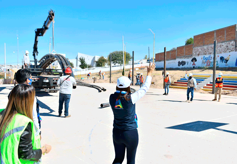 Tere Jiménez supervisó la construcción del nuevo Centro Virtual de Aprendizaje (CEVIDA), que representa una inversión que supera los 11 millones de pesos y se ubicará donde anteriormente fue la pensión municipal sobre Av. San Gabriel en el Ojocaliente II, el cual contará con áreas comunes, salones de usos múltiples, cancha de fútbol 7 y se instalará la velaría de la cancha de baloncesto, contribuyendo al desarrollo intelectual de niños, jóvenes y adultos.