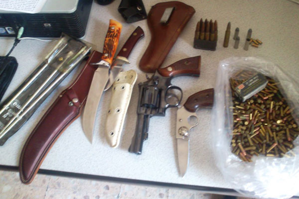 Sobre la mesa, se encontró una bolsa color negro con 458 cartuchos útiles calibre .22, tres cartuchos calibre .38 y cinco cartuchos percutidos; así como ocho cartuchos L570 en un cargador, una navaja tipo pistola y un cuchillo de aproximadamente 30 centímetros.