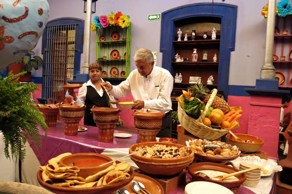 En su reciente visita por Aguascalientes, Andrés Manuel López Obrador comió en el restaurante La Saturnina ubicado en la avenida Venustiano Carranza, donde disfrutó de las delicias de los platillos de la típica comida mexicana. Los comensales aprovecharon para fotografiarse con él, y cuando abandonó el reciento fue despedido con aplausos.