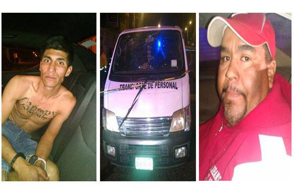 Víctor Hugo Vargas Aguilera murió y su cuerpo quedó debajo de la camioneta, mientras que su hermano Miguel Ángel (con tatuajes en el pecho) fue detenido. El chofer (de cachucha) también fue detenido.