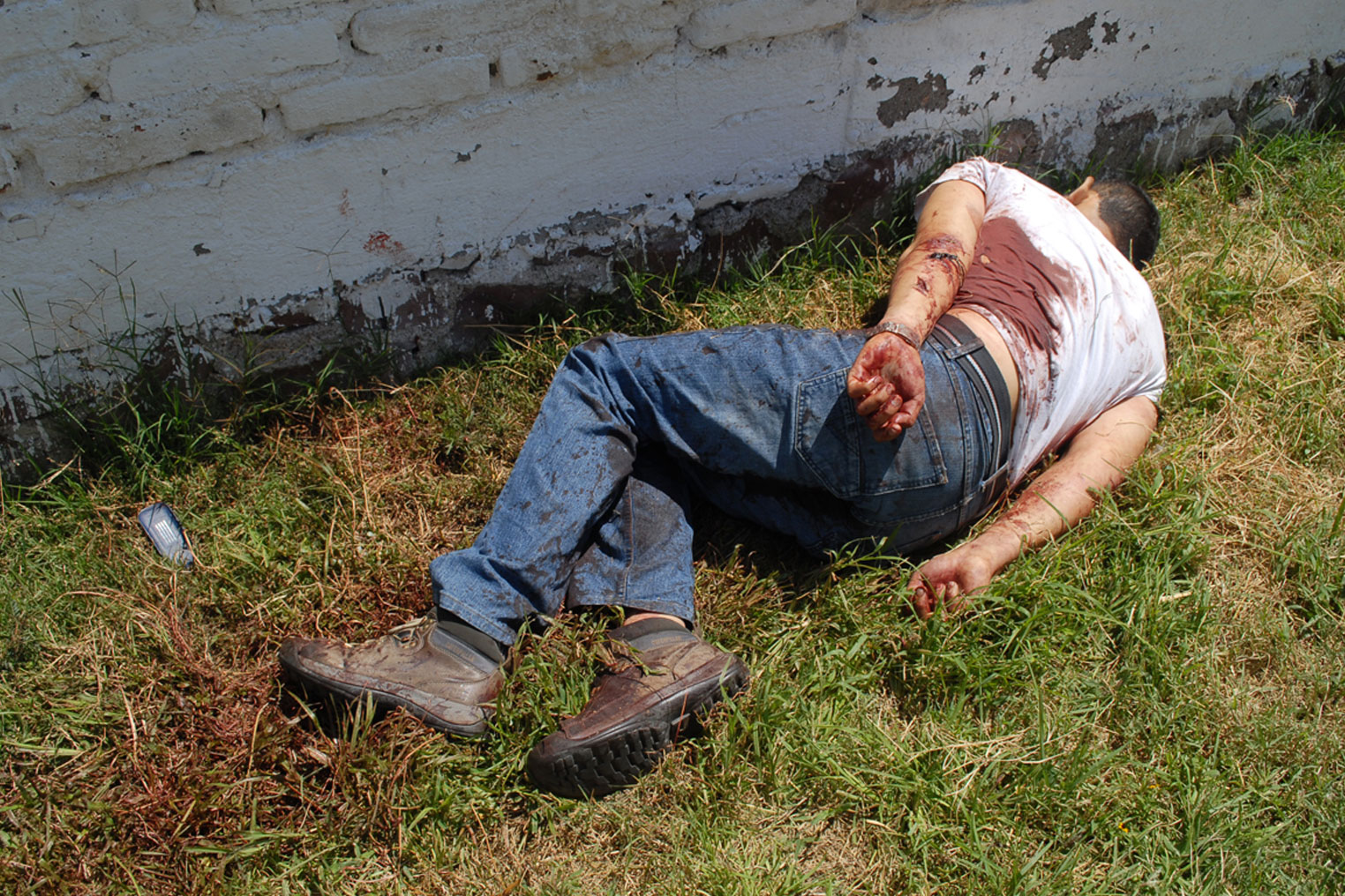 La victima después de lesionarlos corrió a un costado de su local, ya que en este mismo predio hay un salón de fiestas donde el portón estaba abierto, los delincuentes lo siguieron accionado la pistola en dos ocasiones, después de esto los delincuentes intentaron escapar, pero en ese momento iba pasando una patrulla de la Policía Estatal, los uniformados al escuchar que el señor gritaba que lo estaban asaltando, descendieron de las unidad, mientras que los delincuentes decidieron regresar al salón de fiestas cerrando el portón y brincándose por la parte posterior que da hacia un enorme lote baldío, por lo que los policías deciden perseguirlos encontrando a uno de ellos a espaldas de una casa hacia la calle Misiones ya sin vida, después de muriera desangrado por la herida que le provocó el comerciante.