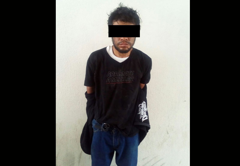 Se trata de Jaime, de 26 años de edad, quien fue detenido cuando los oficiales realizaban sus labores de vigilancia por calles de la colonia Plutarco Elías Calles y en determinado momento, al circular por la calle Narciso Perales, observaron a un sujeto que se encontraba drogándose en la vía pública.