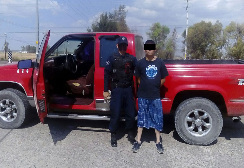 Pablo Genaro, alias “El Mocoso”, de 18 años de edad, vecino de la colonia Fátima y Jacqueline, de 19, originaria de Pabellón de Arteaga fueron detenidos cuando los oficiales realizaban sus labores de vigilancia por la carretera 45 norte y en determinado momento recibieron el reporte de que en la calle Azucena de la comunidad J. Gómez Portugal había sido robada una camioneta.