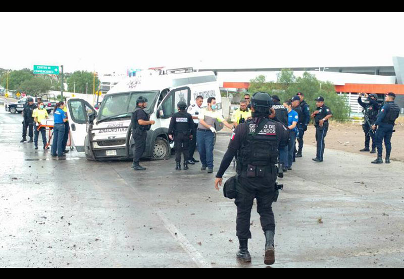 Minutos después de las cuatro de la tarde se activaron los servicios de emergencia, tras el reporte al 911 donde se notificaba que una camioneta de la Policía Penitenciaria que trasladaba un reo se había volcado frente al Salón de Convenciones que se ubica sobre el bulevar San Marcos.
