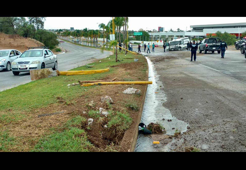 Derivado del percance, al momento de derribar uno de los postes, éste golpeó el frente de una camioneta Honda CR-V azul con placas de Jalisco, que era conducida por una mujer de nombre Norma y le generó daños menores al vehículo.