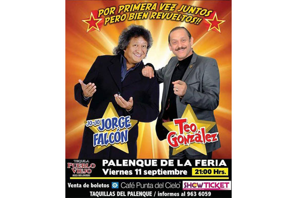 Debido a que la administración del Palenque de la Feria determinó que el escenario siempre no estará disponible, se cancela la presentación de los comediantes Jo Jo Jorge Falcón y Teo González programada para el 11 de septiembre.