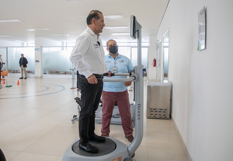 El mandatario señaló que justamente por esta razón, es que además de que en la Clínica de la Columna se cuenta con equipo de vanguardia para eficientar los procesos de rehabilitación de las y los pacientes, también existe un área diseñada para la prevención de caídas y accidentes, y el fortalecimiento de este importante órgano.