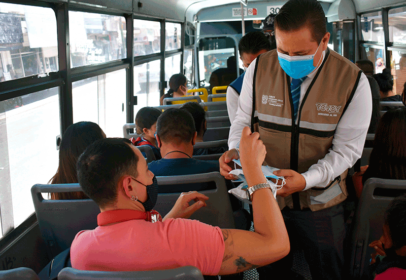Personal de la coordinación entregó en alrededor de 300 cubrebocas, aplicó gel antibacterial a usuarios y operadores, y promovió medidas en cerca de 50 unidades de transporte público urbano.