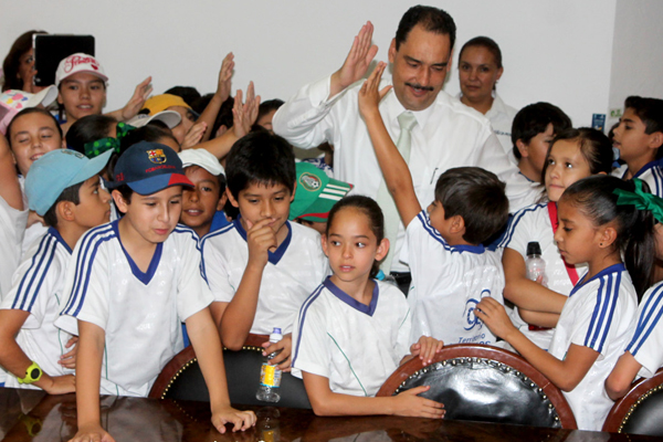 El alcalde Juan Antonio Martín del Campo recibió a alumnos del Colegio Bosques y el Centro Educativo Termapolis quienes participaron en este programa.