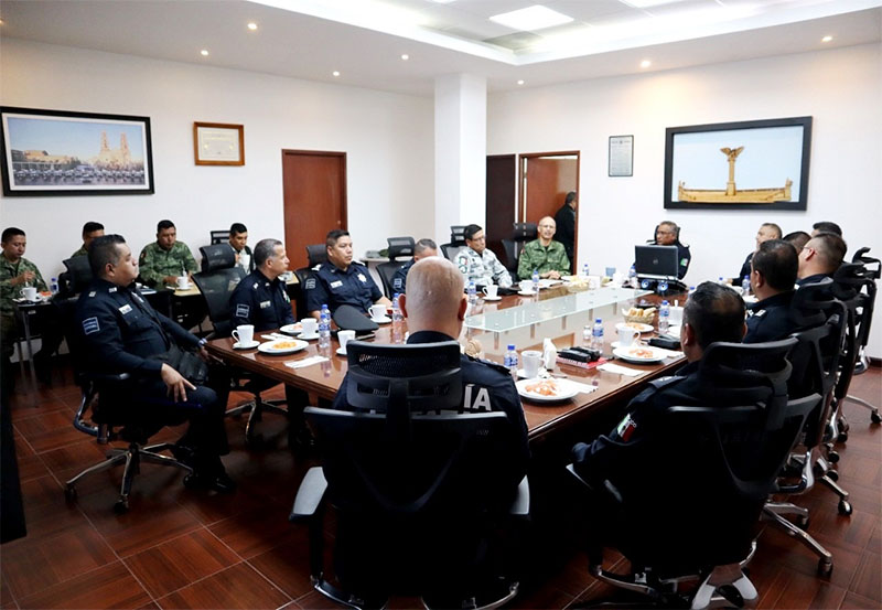 Se llevó a cabo una reunión con el comandante de la XIV Zona Militar, el comandante de la Guardia Nacional, con Directores y Secretarios de Seguridad Pública