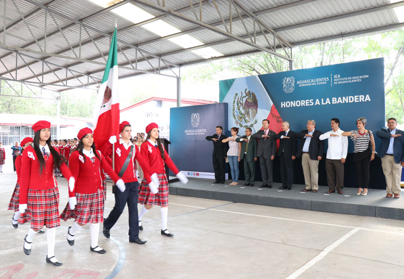En el acto cívico, estuvieron presentes el secretario de Desarrollo Social, Julio César Medina Delgado; el delegado especial del Comité Ejecutivo Nacional del SNTE, José Luis Briones Briseño; el representante del CEN del SNTE en Aguascalientes, Jesús Salomé Rodríguez Manjarrez; así como el presidente de la Sociedad de Padres de Familia, José Luis Rubalcava Márquez.