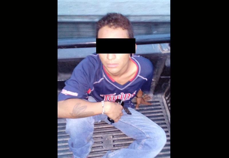 Se trata de Edson Issac, de 27 años de edad, quien fue detectado cuando los oficiales realizaban sus labores de vigilancia por calles del fraccionamiento Insurgentes, cuando en determinado momento, al circular por la calle Mariano Azuela, se percataron de la presencia de éste sujeto que se encontraba drogándose con crystal, por lo cual fue asegurado.