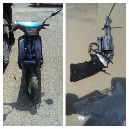 Fue así que revisaron la motocicleta, percatándose que debajo del asiento se encontraba un arma de fuego tipo revólver, calibre .38 súper marca Smith &Wesson abastecido con cuatro cartuchosútiles.