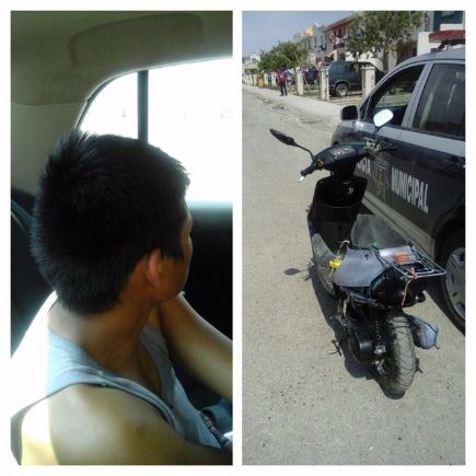 Se trata de José, de 20 años de edad, quien fue detectado cuando los elementos realizaban sus labores de vigilancia por calles del fraccionamiento Urbivillas del Vergel, cuando en determinado momento al circular por la calle San Camilo, se percataron de la presencia de un sujeto que circulaba a bordo de una motocicleta sin placas de circulación y sin casco.