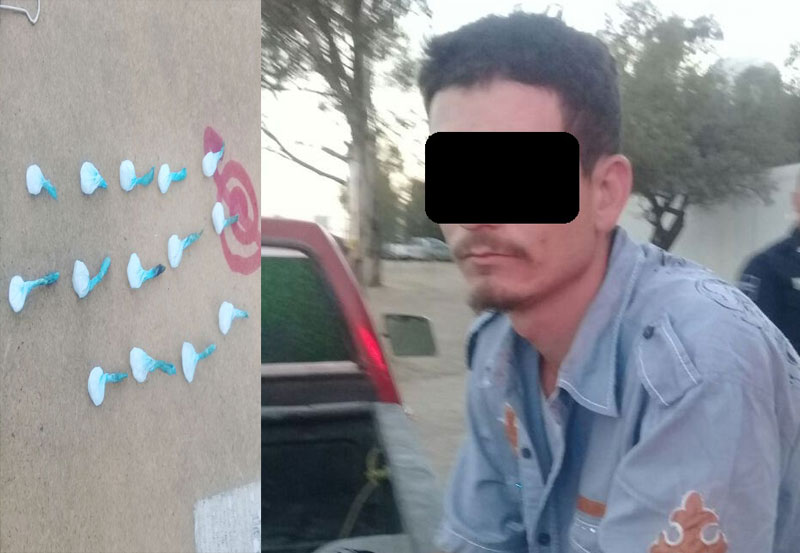 Elementos de la Secretaría de Seguridad Pública del Estado, llevaron a cabo la detención de un individuo en posesión de droga, al que se le aseguraron 14 envoltorios con crystal, por lo que ya se encuentra a disposición del Agente del Ministerio Público del Fuero Común.