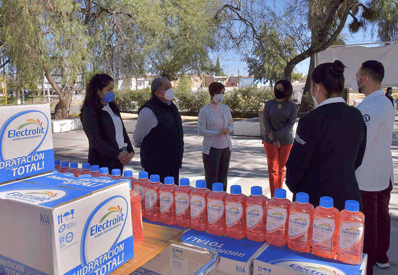 Al hacer entrega de un donativo de 4 mil 32 unidades de hidratación “Electrolit” al Hospital General de Rincón de Romos, la presidenta del DIF Estatal, Yolanda Ramírez de Orozco, destacó que durante la contingencia sanitaria por el Covid-19 el organismo ha fortalecido las acciones de asistencia social a todos los sectores de la población, privilegiando a los más vulnerables.