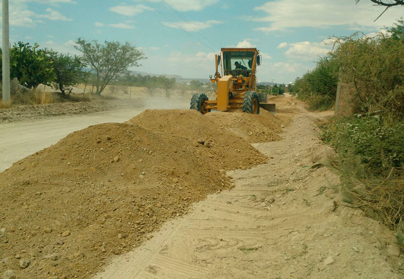 Los trabajos consisten en la nivelación del piso, reparación y/o avivamiento de cunetas laterales (ducto para conducir agua a bordos); también en el camino se aplica una capa de sustrato a base de tepetate o piedra molida según se requiera, con el fin de lograr un camino parejo y homogéneo.