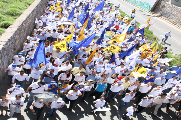 Mediante una marcha por la Dignidad y la Libertad de Aguascalientes que convocó Acción Nacional encabezado por el candidato Juan Antonio Martín del Campo Martín del Campo por la coalición PAN-PRD “Unidos por Tí” a la Presidencia Municipal de Aguascalientes, así como los presidentes del partido Nacional y Estatal Gustavo Madero Muñoz y Jorge López Martín respectivamente; familias completas, jóvenes y niños se unieron esta mañana frente a las canchas del Cuarto Centenario para iniciar su recorrido que concluyó en las instalaciones de la Procuraduría General de Justicia.