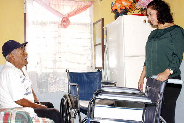 La primera voluntaria del DIF Municipal de Aguascalientes, María Elena Muñoz Franco, a través del Departamento de Trabajo Social y Atención a la Discapacidad, entregó de manera personal cinco sillas de ruedas a personas con discapacidad y adultos mayores.