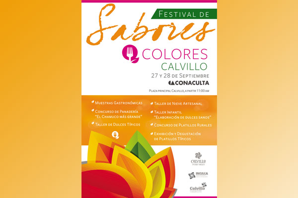 El festival Sabores y Colores de Calvillo contará con un gran número de actividades enfocadas a mostrar la enorme variedad gastronómica que existe en éste Pueblo Mágico, como talleres, exposiciones, concursos, proyección de videos, música en vivo y mucha alegría.