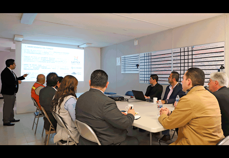 El secretario de Desarrollo Económico, Manuel Alejandro González Martínez, sostuvo una reunión de trabajo con socios de Santa Fe Tecnopark para conocer las principales características y ventajas competitivas que ofrece este parque industrial para la instalación de nuevas empresas.