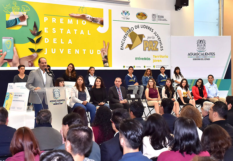 Tras entregar estímulos económicos a los ganadores del Premio Estatal de la Juventud 2017 e inaugurar el XXV Encuentro de Líderes Juveniles por la Paz, el gobernador del Estado, Martín Orozco Sandoval, llamó a los jóvenes de Aguascalientes a ser factores de cambio y contribuir al desarrollo de una mejor sociedad, más inclusiva, pacífica y respetuosa.