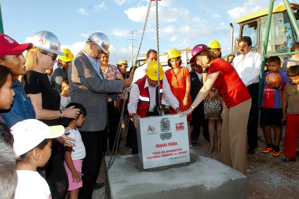 La Alcaldesa de la Capital, Lorena Martínez, colocó la primera piedra de la Casa de Animación Cultural Oriente en su primera etapa, ubicada sobre la Línea Verde, en el fraccionamiento Solidaridad IV, que con una inversión de más de 9 millones de pesos por parte del Consejo Nacional para la Cultura y las Artes (CONACULTA) se convertirá en el primer centro de enseñanza artística del Gobierno Municipal, para beneficio de 48 mil habitantes del oriente citadino.