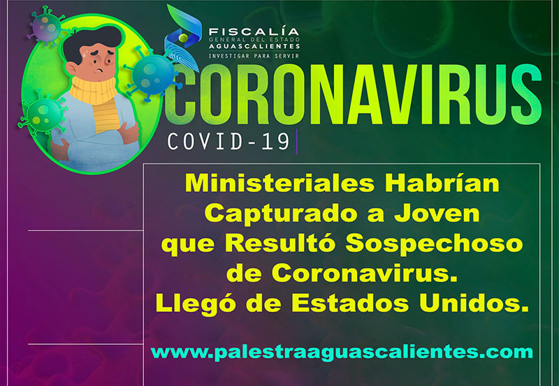Ha trascendido que elementos de la Policía Ministerial de Aguascalientes detuvieron a un hombre de 24 años de edad en el municipio de Pabellón de Arteaga. El joven, que habría llegado a México procedente de Estados Unidos el domingo 01 de marzo, reveló que comenzó a presentar síntomas de Coronavirus el domingo 15 de marzo.