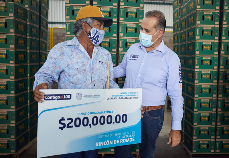 En esta entrega, en la que además se otorgaron implementos agrícolas a 57 productores y se apoyó a tres secundarias con vocación de campo, el mandatario refirió que es importante aprovechar la oportunidad de emplear nuevos sistemas de riego que permitan una mayor productividad y un menor gasto de recursos, para hacer más competitivo el campo.