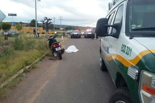 Trágico accidente se registró el martes a las 18:20 horas en el kilómetro 2+900 de la carretera federal 2, frente al Hotel Isabel, metros adelante del cruce con la carretera 45 Norte, luego de que una camioneta de transporte de personal, impactara una motocicleta tripulada por un adolescente, el cual iba acompañado de su madre quien al caer sobre el asfalto, se golpeó la cabeza y pereció instantáneamente.