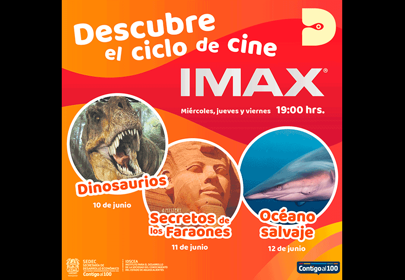 Debido al cierre de las instalaciones del Domo IMAX del Museo Descubre el pasado mes de marzo, el Instituto para el Desarrollo de la Sociedad del Conocimiento (IDSCEA), lanzará un ciclo de películas que se han reproducido en esta sala, mismas que se transmitirán del 10 al 12 de junio a las 19:00 horas en la plataforma de Facebook live Descubre Ags.