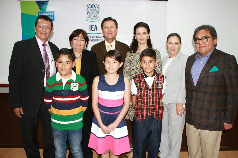 El titular del IEA felicitó a los alumnos de primaria, Wendy Stephania Cerda Lucero, Gerardo Emilio Márquez de Ávila y Axel Gael Romo Torres, que con diez años de edad participarán en el evento que se celebrará del 13 al 17 de febrero, en la Ciudad de México.