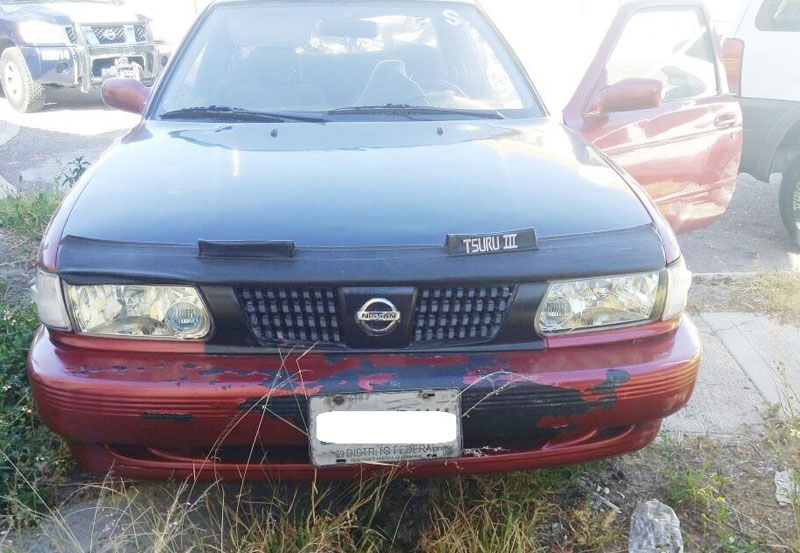 Al consultar el Sistema Plataforma México, se conoció que el vehículo Nissan negro y el Nissan color tinto, ambos con placas de la Ciudad de México, cuentan con reporte de robo y placas sobrepuestas; al hacer una inspección, los policías detectaron en el interior del vehículo color tinto, un arma de fuego corta, tipo escuadra, un cuchillo y varias llaves trabajadas.