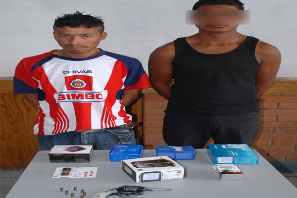 Dos sujetos que se encontraban armados, entre ellos un menor de edad fueron detenidos tan solo unos minutos después de que ya habían robado de equipos de telefonía celular en el municipio de Cosío, luego del operativo implementado por elementos del Grupo Preventivo de Intervención Inmediata de la Policía de Aguascalientes de manera conjunta con policías municipales del lugar.