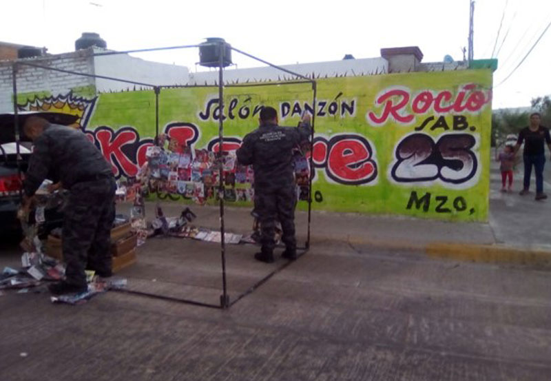 Esto en cumplimiento al oficio derivado de una Carpeta de Investigación, donde elementos de la Agencia de Investigación Criminal, adscritos a esta Delegación, fueron quienes lograron identificar los puestos semifijos en la Colonia Morelos II, consiguiendo el aseguramiento.
