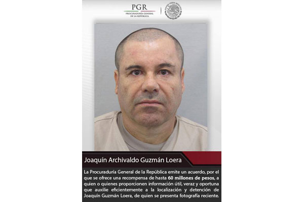 La Procuraduría General de la República emite un acuerdo, por el que se ofrece una recompensa de hasta 60 millones de pesos, a quien o quienes proporcionen información útil, veraz y oportuna que auxilie eficientemente a la localización y detención de Joaquín Guzmán Loera, de quien se presenta fotografía reciente.