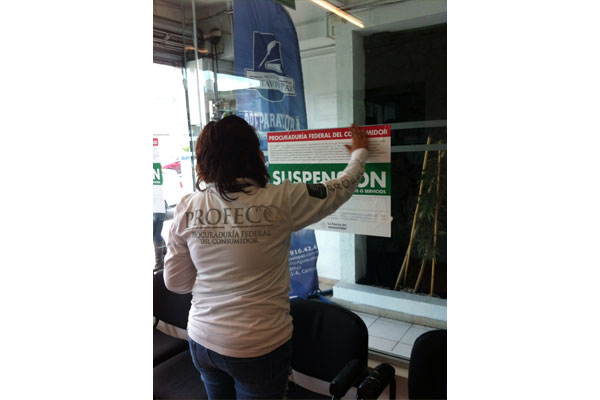 La Profeco Delegación Aguascalientes, atendiendo a una denuncia, suspendió la comercialización del cobro con terminal bancaria en Uniformes Jardín, ubicado en Carlos Sagredo 1705 colonia San Cayetano.