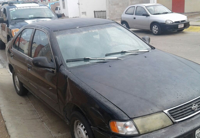 La tercera unidad fue localizada cuando los oficiales realizaban sus labores de vigilancia por calles del fraccionamiento Trojes del Sur, fue así que al momento de circular por la calle Abraham González, se percataron de la presencia de un vehículo marca Volkswagen Sedán azul, con placas AEG-6513.