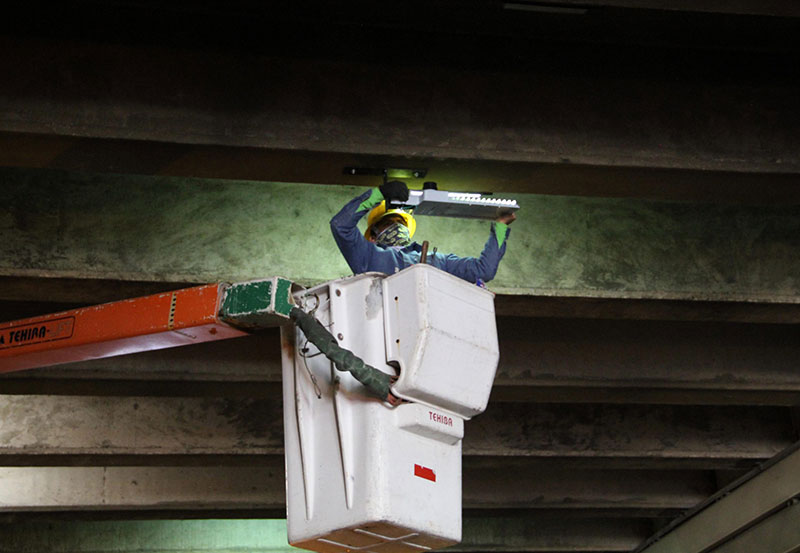 Mencionó que recientemente se modificó la ubicación de los reflectores del paso a desnivel de la avenida Adolfo López Mateos poniente, recalcó que en el tramo de mayor antigüedad, los reflectores se encontraban sobre los muros laterales, pero se consideró más conveniente aumentar la visibilidad reinstalando 42 de ellos en la parte central del techo.