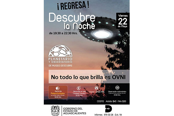 El próximo viernes 22 de mayo como parte de las Noches de Descubre, el tema a analizar y observar por la mirilla del telescopio del Planetario y Observatorio del Museo Descubre, tiene por título “No todo lo que brilla es OVNI”. Un tema que pretende analizar una de las preguntas que ha inspirado a los creadores de la ficción y ha dado vida a múltiples programas televisivos ¿existe o no la vida en otros planetas?