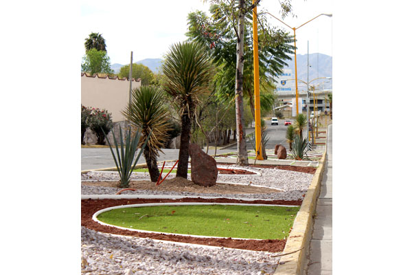 “Luego de una valoración al trabajo realizado por la Dirección de Parques y Jardines durante el 2014, consideramos importante dar continuidad a todas aquellas acciones exitosas desde el punto de vista estético y funcional como es el caso de la instalación de pasto sintético, cactáceas, tapetes de grava y tezontle en camellones y triángulos, que adicionalmente nos han permitido un considerable ahorro de agua y se ha incrementado la seguridad con la colocación de puntos luminosos”.