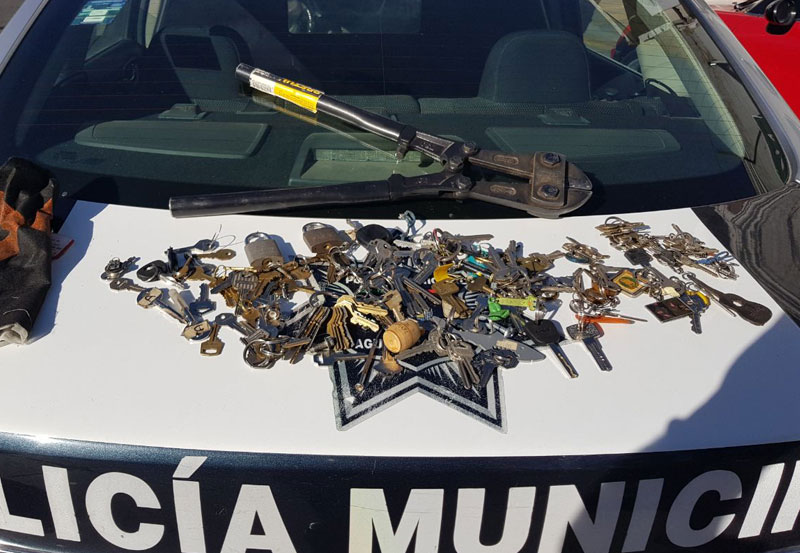 Con más de un centenar de llaves trabajadas y un auto con reporte de robo fue detenido por la Policía Municipal de Acuascalientes el presunto responsable tras una persecución que se registró en calles de la zona centro.