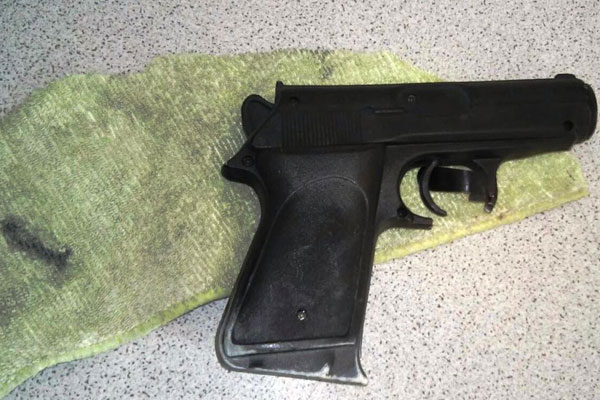 Los uniformados observaron a distancia al ahora detenido, sentado en la banqueta y un arma tipo escuadra, en color negro, como a dos metros de distancia sobre su lado izquierdo, en dirección de norte a sur.