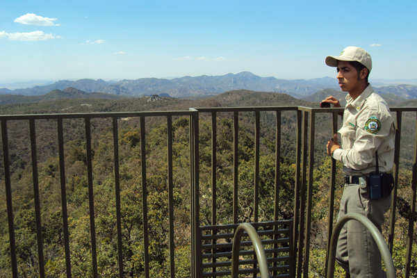 Mencionó para realizar el monitoreo y supervisión del lugar la Secretaría de Medio Ambiente, cuenta con dos casetas de vigilancia en el lugar así como dos torres de observación en Monte Grande y catorce guardabosques quienes realizan sus labores de inspección fija y móvil en vehículos de motor, bicicleta o a pie tierra.
